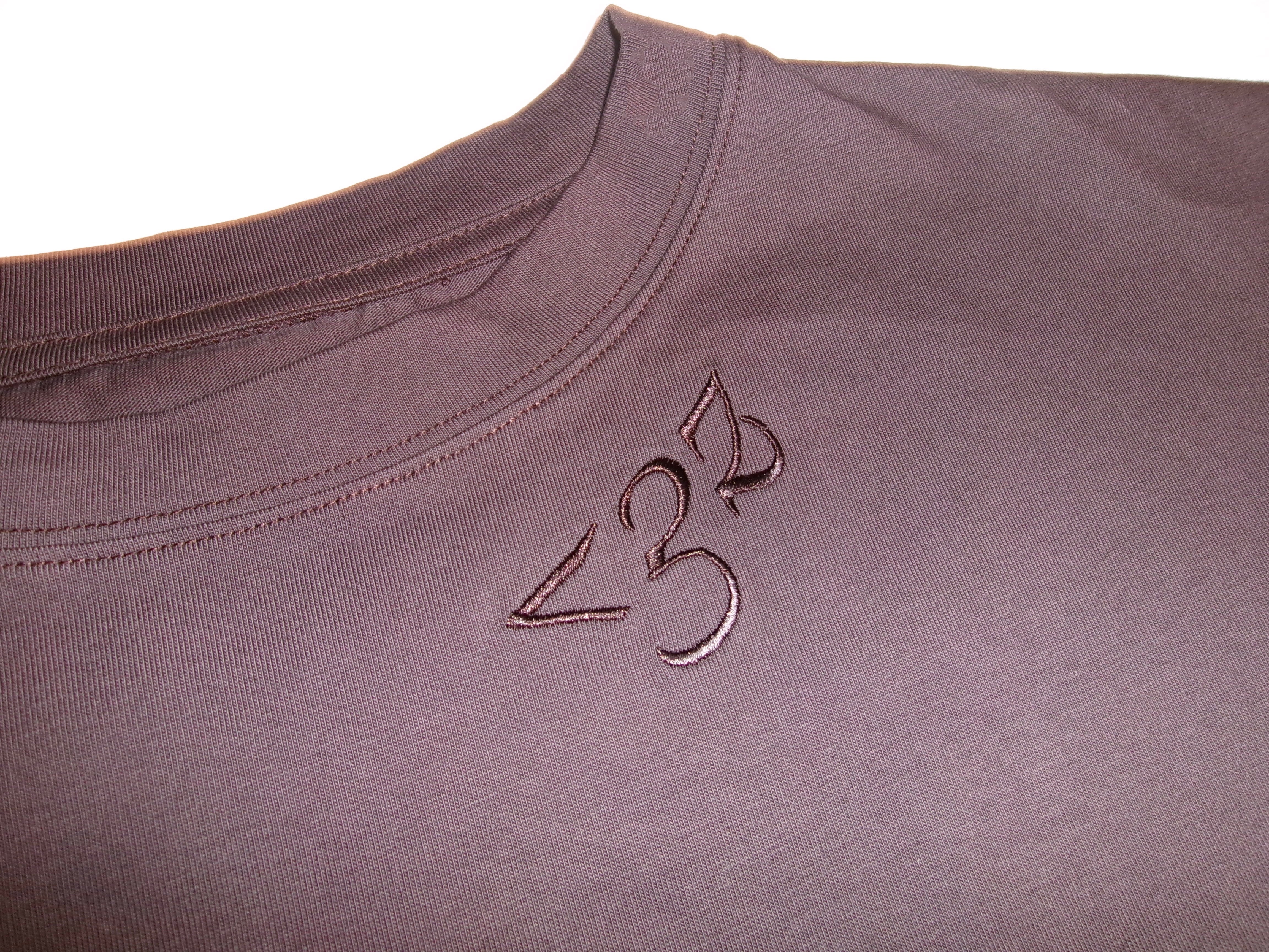 首元に<3zのミニロゴと、背面にスミレをイメージした花の小池俊司による手書きデザインを刺繍で施したTシャツ。